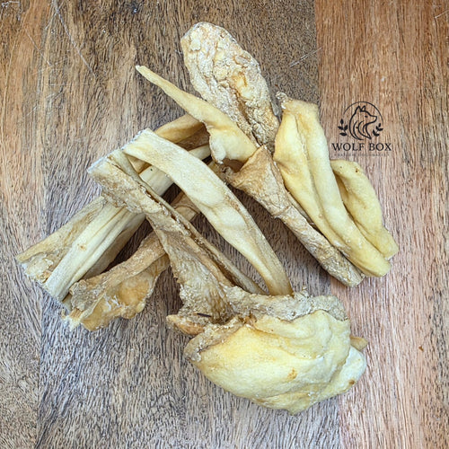 Honden kunnen tot tienduizenden keren beter ruiken dan wij. Daardoor ruiken ze niet alleen sterker maar ook veel meer. Dat maakt dat textuur en natuurlijke aroma's voor hen extra belangrijk zijn. Precies daar zit het plezier van zo een overheerlijke en pure snack van Wolfbox!